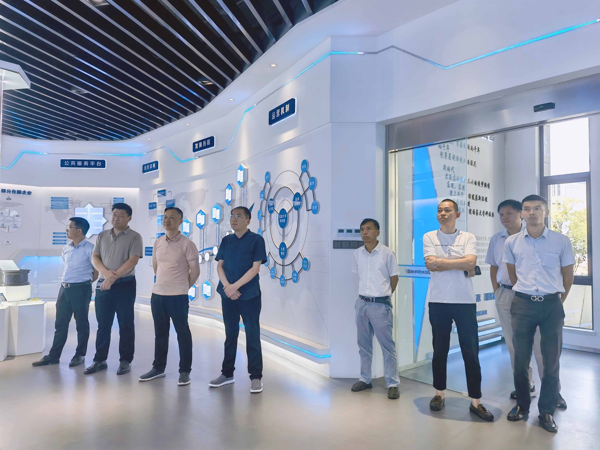 刘爱武一行先后参观了园区的重点科技成果推介展区、入驻企业办公区及综合服务工作站。