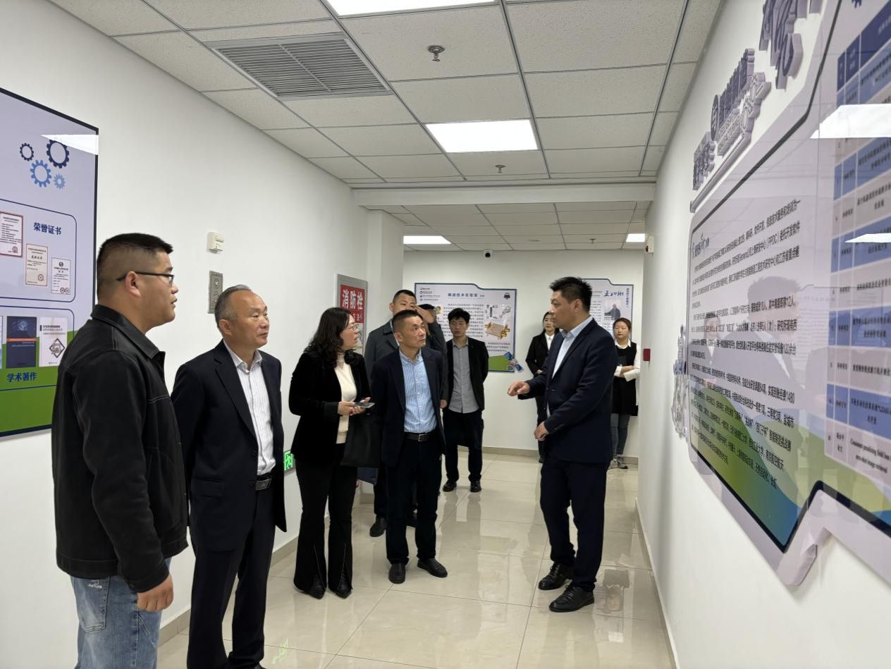 调研团一行参观了大学科技园的展厅、科研平台及外国专家工作室。张建功介绍了园区在创业孵化、人才培养、资源集成、技术转移以及科研平台等方面的建设情况。