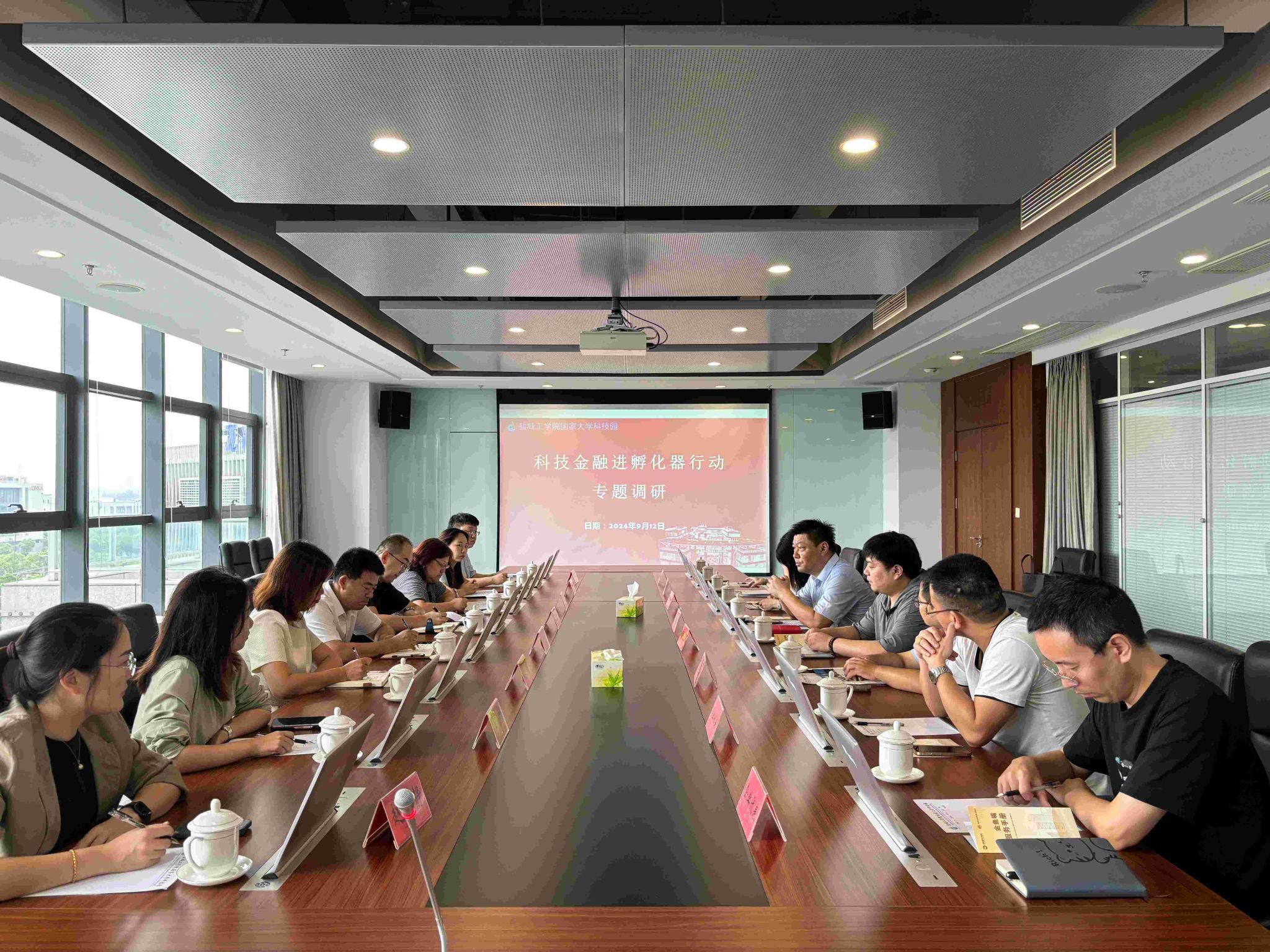 9月12日上午,江苏省创业中心科技金融服务部主任宋国梁,江苏省创业中心科技金融服务部业务经理谢秀红,中国建设银行盐城分行普惠部副总经理徐苏洁,南京金鱼嘴每日路演文化发展有限公司副总经理王怡,南京金鱼嘴每日路演文化发展有限公司高级投资经理赵静,中国建设银行盐城分行普惠部产品经理刘锋一行莅临我校大学科技园进行科技金融孵化器行动专题调研。我校盐龙湖校区管委会、大学科技园、技术转移中心副主任、党总支副书记张建功,盐城市生产力促进中心主任高文超,盐城市生产力促进中心副主任夏芸,以及园区企业代表陪同调研。
