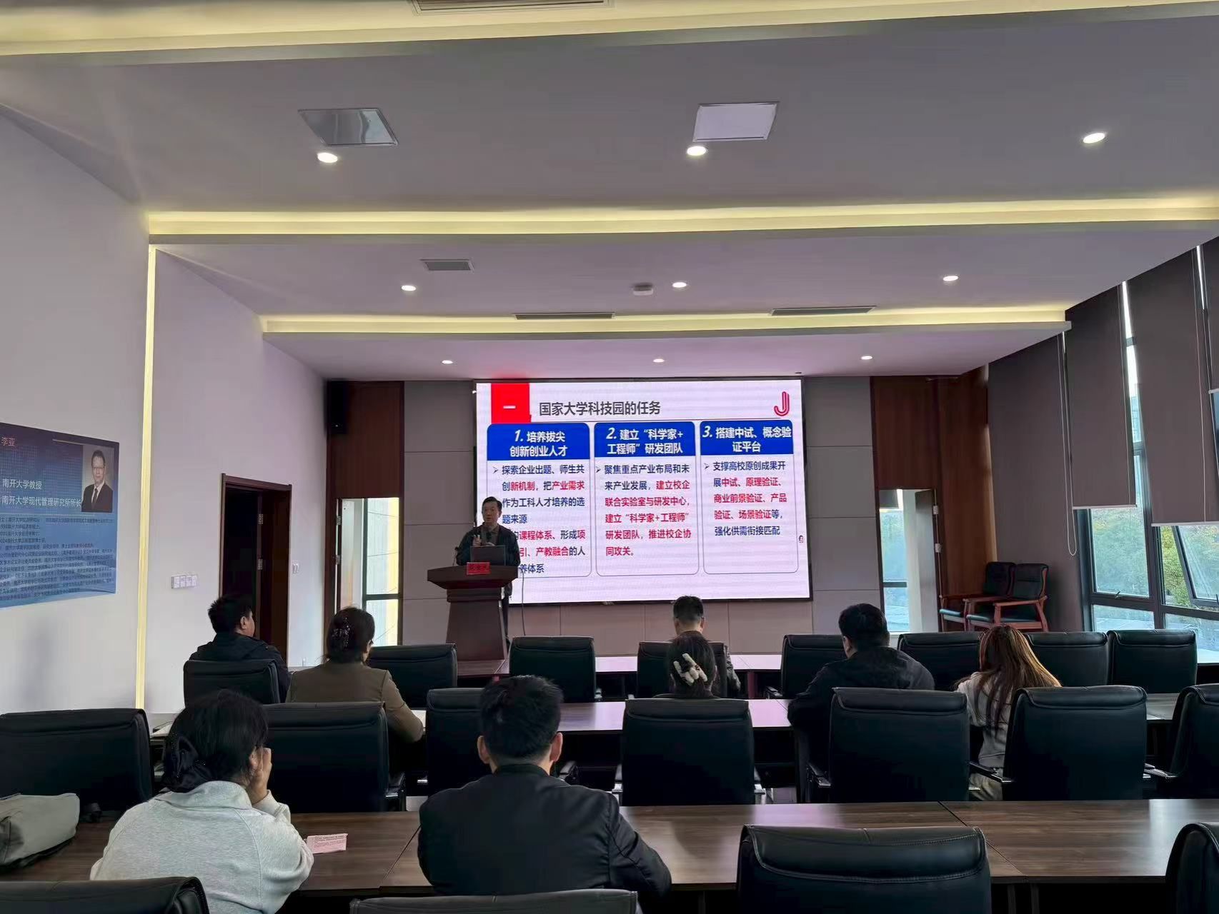为扎实推进国家大学科技园优化重塑工作,明确新时期发展方向与实践路径,11 月 11 日下午,在大学科技园E1北楼二楼报告厅,我校国家大学科技园邀请中国大学科技园联盟专家委员会专家、江苏省大学科技园联盟名誉理事长殷宝良作题为《关于新时期国家大学科技园的建设和思考》专题报告。报告由副主任、副书记(主持工作)赵云峰主持,部门全体员工参加。