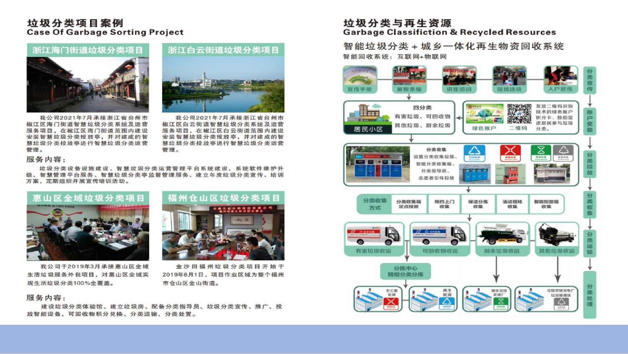 公司以智能硬件+软件平台双轮驱动,在垃圾分类、智慧公厕等领域形成核心竞争力。近年落地江苏淮安生态文旅区运营服务、南京六合区智能分类项目、浙江平湖试点小区建设等标杆案例,推动垃圾分类参与率提升至85%以上,助力“无废城市”建设。