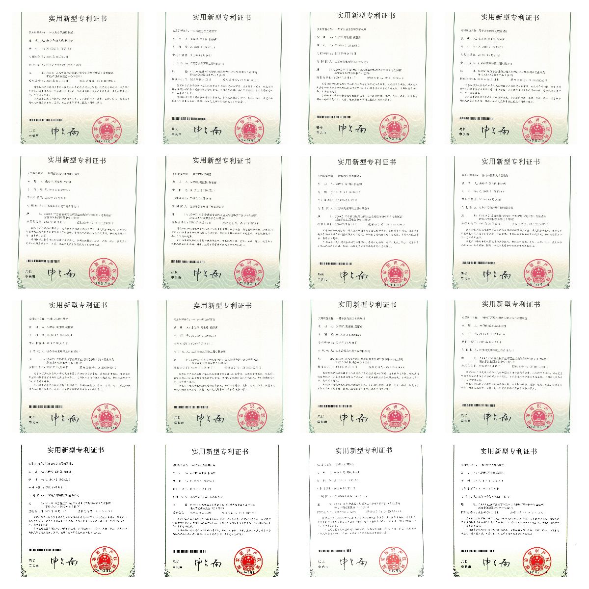 (部分证书展示)