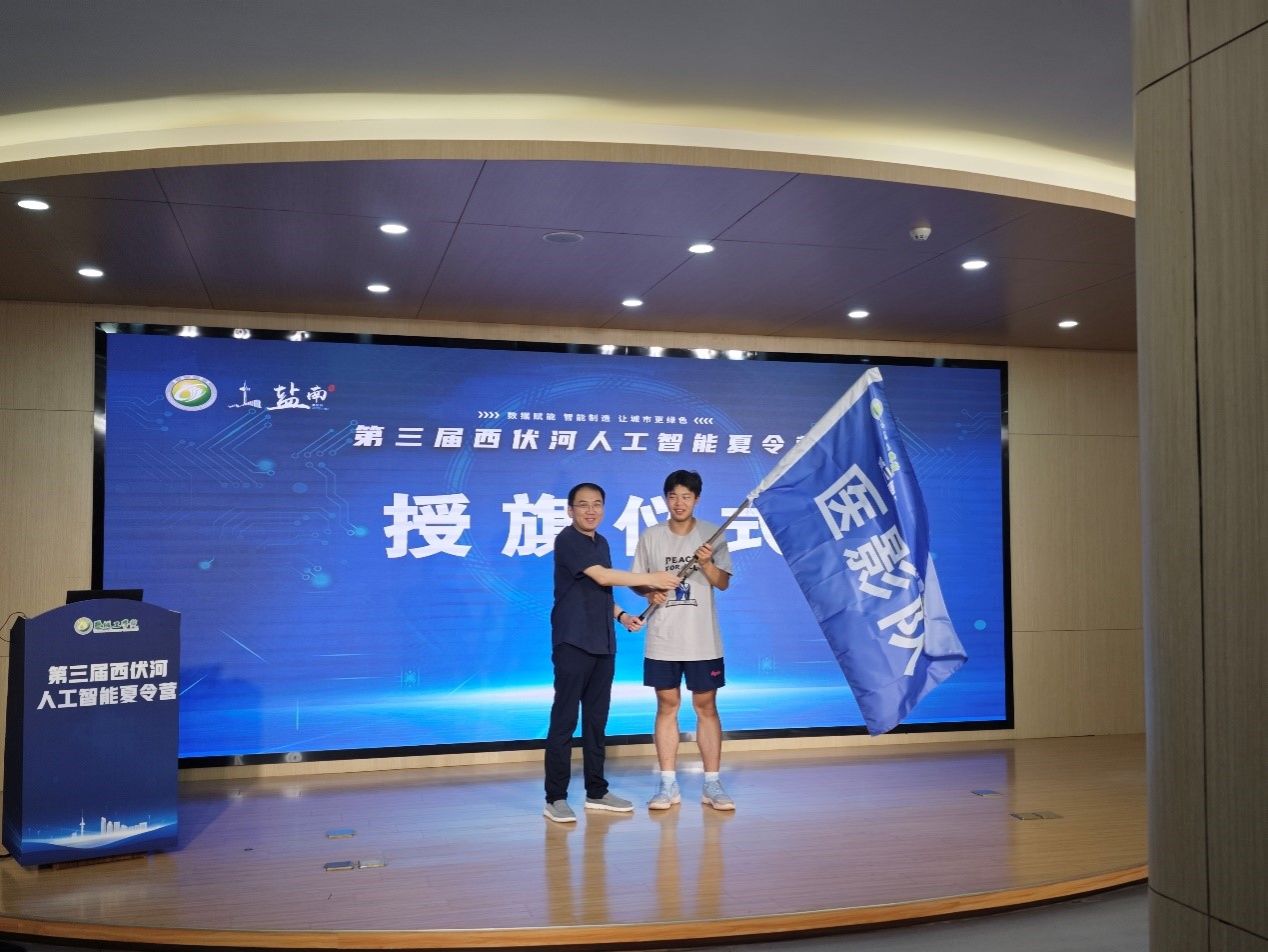 丁成教授代表学校给本届夏令营五个队伍授旗,并宣布开营。信息学院院长、西伏河人工智能学院院长王如刚教授致欢迎辞。信息学院副院长徐森教授主持仪式。