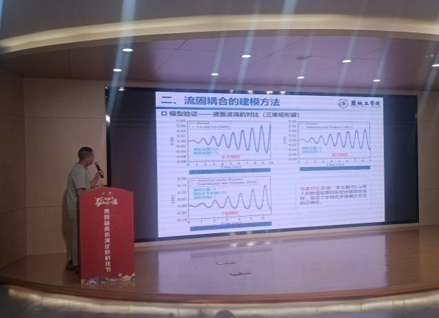 江苏正锐达新能源有限公司董事长、国家千人-魏思航作题为《中国风电支撑结构发展与展望》的学术报告,福建永福电力设计股份有限公司、全国创新创业优秀博士后朱升东博士作题为《复杂海域风电创新型吸力式基础规模化应用》的学术报告、土木工程学院顾国庆副教授作题为《基于光纤光栅传感的风电螺栓裂纹检测研究》的学术报告,土木工程学院青年博士(博士)刘严、孟逊、戴迪等分别作题为《钢结构断裂模拟进展》、《复杂矩形储液系统非线性流固耦合动力学与控制》、《秸秆资源化利用与超软土生态加固技术》的学术报告。