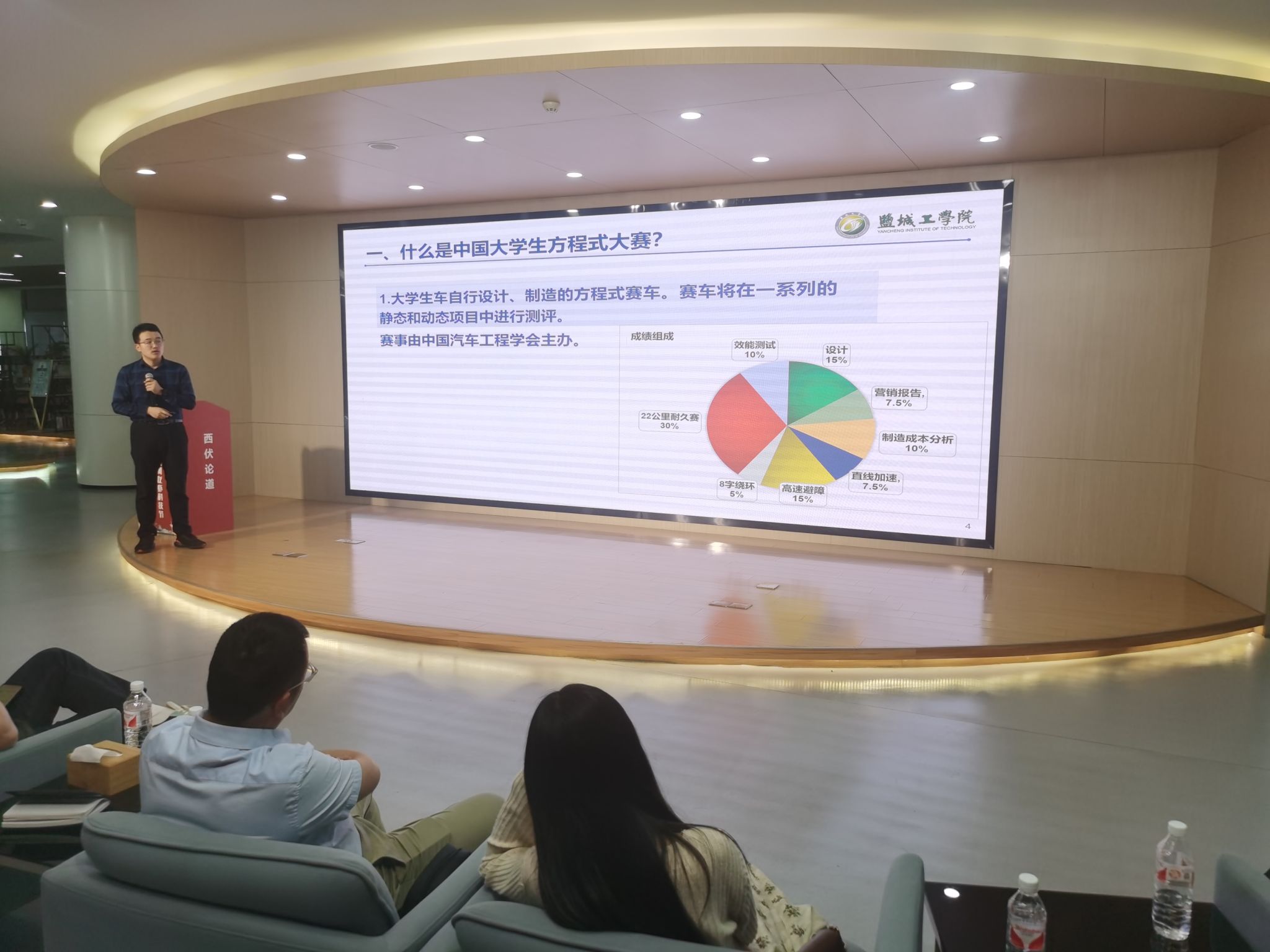 活动开始,郭俊副教授带来了关于播种机的精彩讲解。他详细介绍了播种机的发展历程、技术革新及其在现代农业中的应用。郭教授的报告不仅涵盖了播种技术的基本原理,还展示了最新的研究成果和未来趋势,使听众对农业机械化有了更深入的理解。接下来,樊永胜副教授分享了生物燃料的最新研究进展。他的演讲深入浅出,从生物燃料的环保优势到其生产技术的挑战,全面剖析了这一可再生能源的发展前景。樊教授还通过实例说明了生物燃料在减少碳排放和促进能源多样化方面的重要作用。最后是实验室主任刘基冈老师对方程式赛车知识分享。刘主任不仅讲述了方程式赛车的设计技术细节,还介绍了赛车运动在全球范围内的影响力和它如何推动汽车技术的创新。他的讲解生动有趣,使得复杂的技术问题变得易于理解,激发了年轻学子对赛车工程的热情。