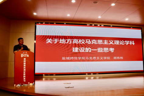顾栋栋以“关于地方高校马克思主义理论学科建设的一些思考” 为题,介绍了马克思主义理论学科概况以及盐城师范学院马理论学科建设的探索,并从整合校内资源,凝练学科方向和特色、快速自然积累,丰富学科发展基础条件、对标对表攻关,明确目标任务并分解落实几个方面分享了关于地方高校马克思主义理论学科建设的思考。